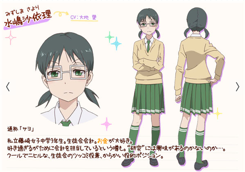Yuiko Enomoto (榎本 結子) Yuiko is the Student Council's exPresident, now Vice President, who has thick eyebrows She is a childish girl who is prone to cry really easily She is also Sayo's childhood friend She admires the student council president of South Middle榎本 結子 通称:エノ CV_佐倉綾音 3年生。まぁまぁかわいく、そこそこ成績がよく、なかなか有能で周りから人々からわりと信頼されている、まずまずの人物です。(原作サヨ談) 身 長 /152cm。 誕 生 日 /10月9日生まれ。 血 液 型 /A型